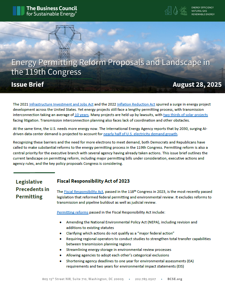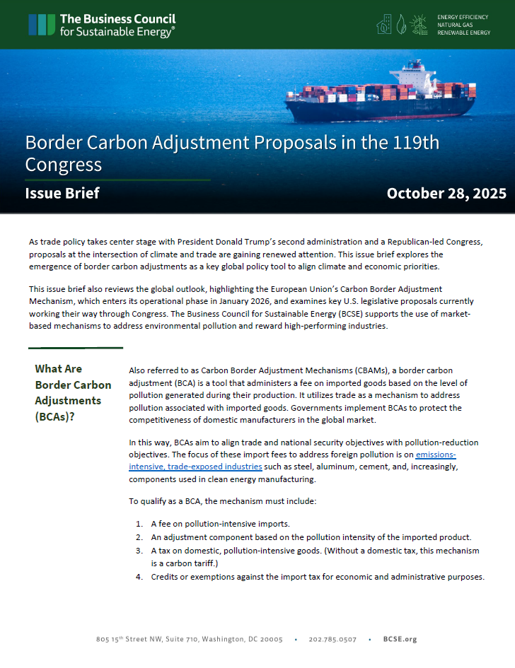 Written by BCSE staff, these short papers provide an easily accessible snapshot of legislative developments and clean energy issues to help inform the work of our members.