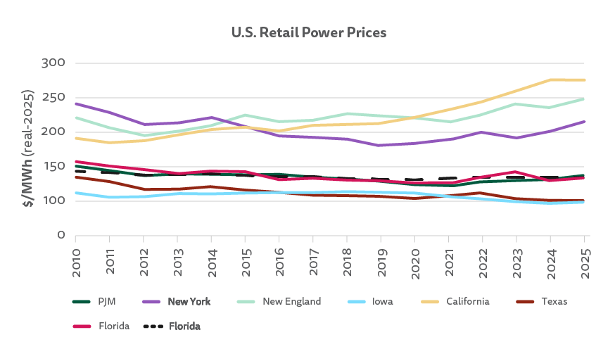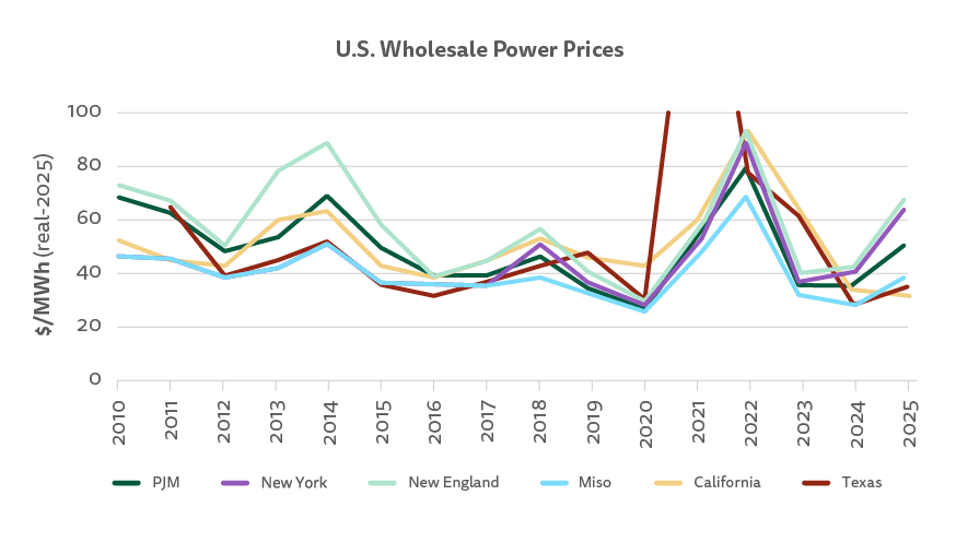 Amid affordability concerns, wholesale power prices increased sharply in 2025, and retail prices inched up slightly.