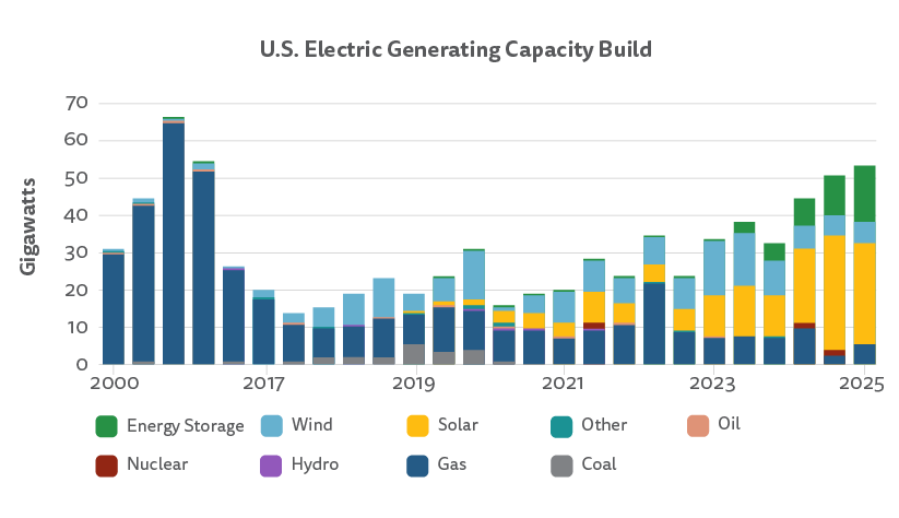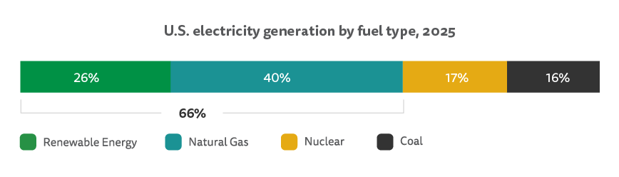 Natural gas and renewables provided two thirds of U.S. power in 2025.